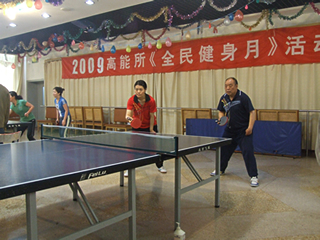 2009年4月18日中科院第四协作片乒乓球比赛分别在研究生院、高能所拉开战幕。我所派出以乒协为班底的九名运动员参赛,经过两天紧张激烈的比赛,运动员们赛出了风格,赛出了水平。更可喜的是我所冯红燕同志荣获女子单打第一名。为此向他们表示衷心的祝贺!