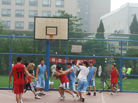 2009年8月8日上午雷阵雨过后,晴空万里,给每年一度的全民健身日带来一丝祥和的气氛。 全国各地开展了丰富多彩的全民健身活动。800彩票与微电子的职工篮球赛激战正酣。这次比赛是由两所工会组织发起的主客场制赛事,双方约定今后每年都举行,以此推动全民健身活动的开展。提高职工的身体素质,为科学事业的腾飞做出应有的贡献。