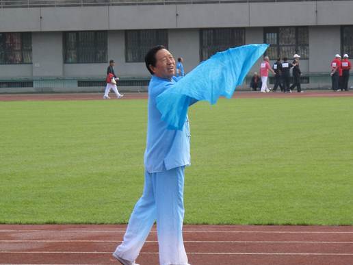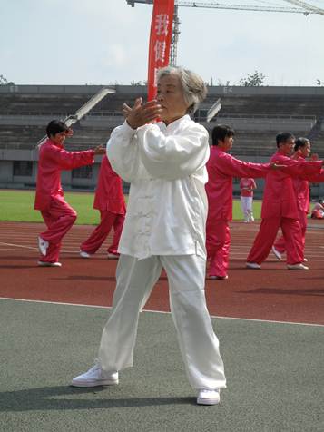 我所年龄最大的运动员张素芬老师参加了八段锦的比赛