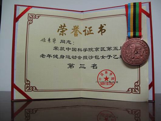 双双获奖。姬素荣获得女子投沙包乙组第三名,张雯华获得第十名