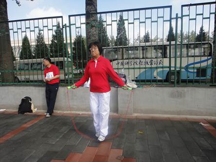 身姿多么的轻盈。王桂敏获得女子甲组跳绳第八名