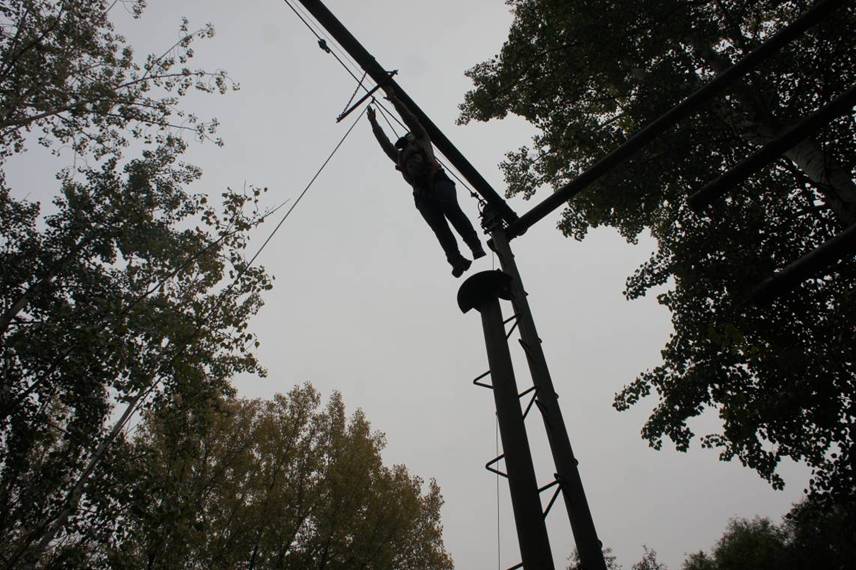 教练在讲解高空跨越