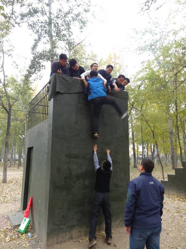 教练在讲解“毕业墙”