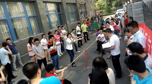 活动当日下午,新楼旁早早地聚满了参赛选手,积极进行热身等赛前准备。不惧炎炎烈日,同学们高昂的热情点燃了现场的气氛。此次运动会变“竞技”为“娱乐”,改“精英展现”为“全民参与”,大大地增加了运动会的参与度与趣味性。运动会共设置三个比赛项目:拔河比赛、背部夹球跑以及集体跳绳。首先由每个研究室选中10人参加的拔河比赛点燃了大家的激情,不仅赛场上竞争激烈,拉拉队的助威呐喊声更是震耳欲聋,新生代室一路所向披靡,摘得桂冠。之后由各研究室组成的参赛队进行了“背部夹球跑”以及“集体跳绳”趣味比赛,观众在一旁指点协助,大声助威,热闹非凡。