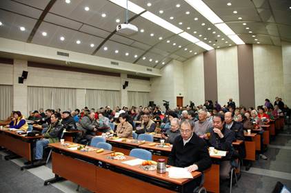 在报告厅里挤满了前来参加团拜会的老同志,他们个个精神焕发,好久不见面的老同事在这里相聚,互相问侯,大家欢聚一堂。