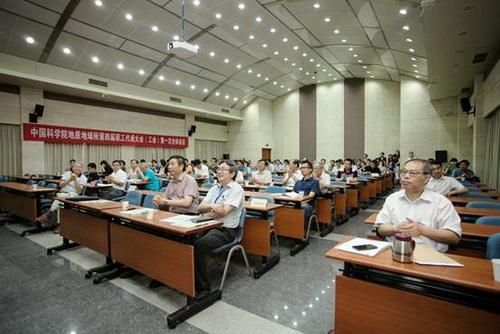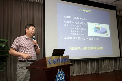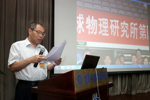 伴随着雄壮的《国歌》声,主持人钟华同志宣布大会开始。根据大会议程,首先由副所长吴福元同志作全所工作报告。他从研究所基本情况、科研绩效、平台建设、后备人才培养、园区建设、问题与展望等六个方面回顾了研究所辉煌的过去,提出研究所未来将通过促进优秀人才成长、构建独具特色的研究手段和培育创新思想,增强研究所开展大科学研究和服务国家重大需求能力等方面,力争在固体地球科学领域作出原创性贡献,为国家的经济发展做出更大贡献!随后朱日祥所长通报了我所“率先行动”计划的进展情况。尹东岳同志、邹志萍同志分别作研究所财务工作报告和第三届职代会(工会)财务报告。