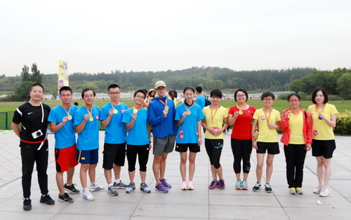 秋日的北京天空晴朗,温度宜人。930分许,参赛人员和志愿者们在奥森南园集结,有序进行赛前热身准备。10点整,健身跑准时开始。选手们沿着5公里路线,挑战自我,勇于争先。经过一番努力,所有参赛队员均冲过终点,完成了既定路线的赛程。颁奖环节,大家手捧奖牌,尽情享受战胜自我,完成比赛的喜悦。本次健身跑活动也在欢声笑语中成功落下帷幕。