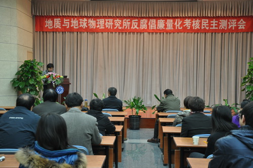 按照中科院《关于全面试行反腐倡廉工作量化评价的通知》要求,11月16日上午,由北京分院党组副书记、纪检组组长隋红建带队,管兵、黄康平、鲁正中、谢京红等一行5人对我所近两年的反腐倡廉工作进行考评。所领导、党委委员、纪委委员、科研与支撑骨干代表、中层干部、党支部书记、职工代表60余人参加了反腐倡廉量化考核民主测评大会。测评会由党委副书记赵平主持。