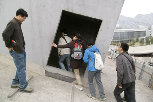 下午到达春游的第二站——位于凤凰岭的“国家地震紧急救援训练基地”。曾经参加过汶川地震救援的何教官接待了我们。他首先带领我们体验震后废墟,进入了一座整体倾斜部分坍塌的建筑物里。很快就有了晕眩的感觉,驻足而立随时都有摔倒的可能。大家只能紧把扶手,顺着变形的楼梯艰难前行。想想救援人员正是在这样的坚险境地中顽强搜救,大家便不由得对他们的工作肃然起敬。何教官又带我们参观了应急装备库,介绍了每种器械在应急救援中的作用,比如承重2吨的救援绳、承重50吨的气垫、以及强力破拆器械等。随后观看了4D动感电影,仿佛置身于地震现场,身临其境般的体会到了地震发生时地动山摇,海啸肆虐,房倒屋塌的场景。最后大家就防震自救的问题与何教官进行了讨论,何教官还当场演示了几种用于救援和逃生的绳结打法。