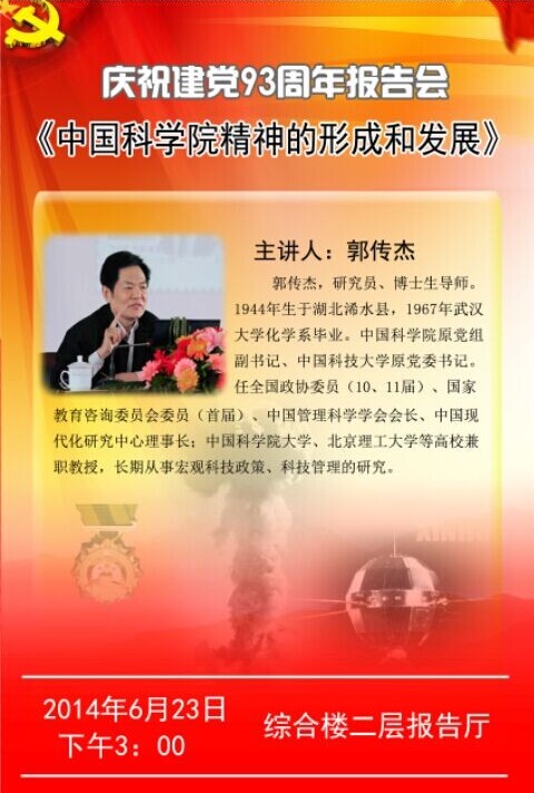 6月23日“庆祝党建93周年报告会——《中国科学院精神的形成和发展》”