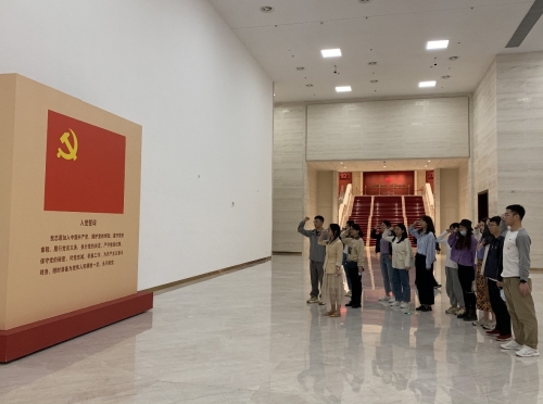 集体参观过程中,党员同志们纷纷表达了学习感悟。“参观完新民主主义革命时期的历史,真切的感受到了老一辈革命者的艰辛,这也使我今后将时刻牢记,是谁带领我们走到了今天,也会牢记时代赋予我们每一代人的历史使命,奋发向前!”,预备党员阮仁浩如是说。党员刘聪聪表示展览馆中展示的牺牲奉献的伟大精神让人震撼,这也将激励今后的自己立足新的起点、面向新的征程,创造属于我们这一代人的伟大业绩,为共产主义事业奋斗终身。入党积极分子李欣舟认为我们作为科研工作者,尤其需要学习老一辈科学家们所具有的胸怀祖国、服务人民的爱国精神,勇攀高峰、敢为人先的创新精神,追求真理、严谨治学的求实精神,以及淡泊名利、潜心研究的奉献精神;只有如此,才能不怕困难挑战,勇攀科技高峰。参观结束后,党员同志们在三楼宣誓区的鲜红党旗下重温入党誓词,庄严宣誓:请先辈们放心,强国有我。