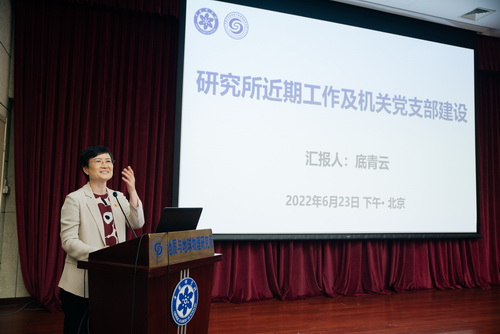 王笃金作学部工作和党支部工作情况报告,从学部发展和沿革、学部的基本职能、800彩票与学部、学部局及局党支部四方面,介绍了学部局坚持“融入中心,服务大局”,结合工作特点开展党建工作的做法和体会。底青云作“800彩票科研进展、党建与科学家精神”主题报告,介绍了800彩票概况、近期工作进展以及机关和研究所的党建工作,并作为一名女科学家及老党员,分享了巾帼建功、科研报国的感悟。