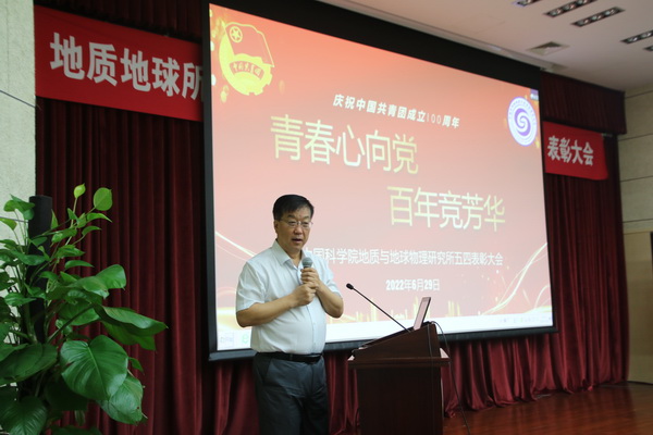为庆祝中国共产主义青年团成立100周年,持续弘扬五四精神,表彰模范先进,发挥榜样作用,引领广大团员青年听党话、跟党走,2022年6月29日上午,我所举行“青春心向党 百年竞芳华——庆祝建团100周年暨五四表彰大会”。大会通过线上线下结合的方式进行。所党委书记张小雷研究员、刘嘉麒院士及相关职能部门负责同志出席大会。所团委委员、各团支部书记、“两优”获奖代表、团员青年代表等参加大会。大会由所团委书记张之涵同志主持。
