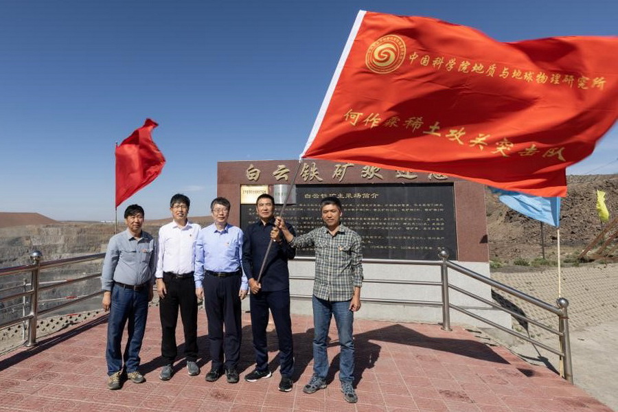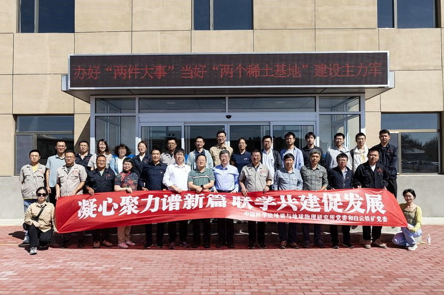 近年来,我所与包钢(集团)公司加强联合科技攻关,在白云铁矿深部勘探、稀土资源开发等方面取得了喜人的科研成果。为进一步加强双方合作交流,9月4日,党委副书记、纪委书记杨俊成,李献华院士、范宏瑞研究员、苗来成研究员及青年科研骨干等27人赴白云鄂博与白云铁矿党委开展党建交流活动,并举行“何作霖稀土攻关突击队”授旗仪式及科学家精神教育基地揭牌仪式。白云鄂博铁矿党委书记秦鹏渊、包钢(集团)公司首席技术专家赵永岗、采矿作业部主任耿飞出席活动。