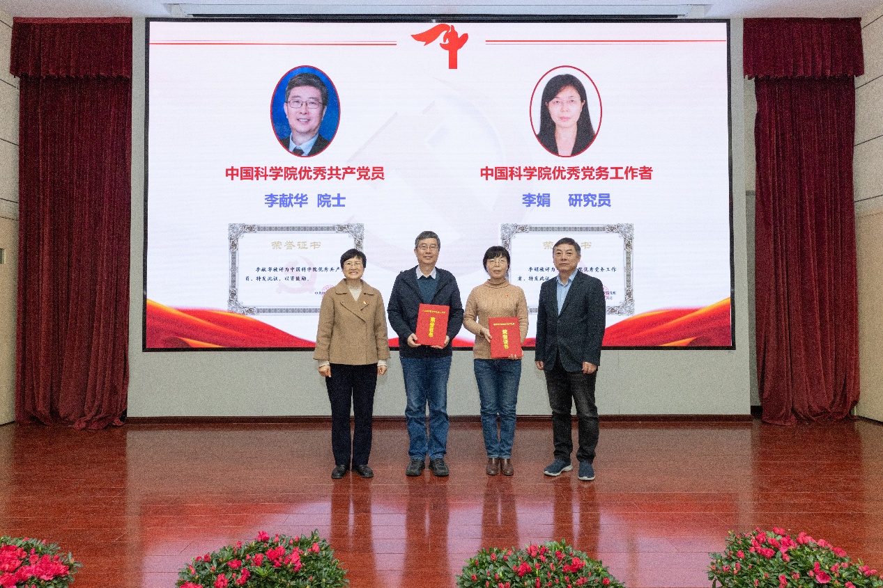 颁奖仪式(中国科学院优秀共产党员 李献华院士 中国科学院优秀党务工作者 李娟 研究员)