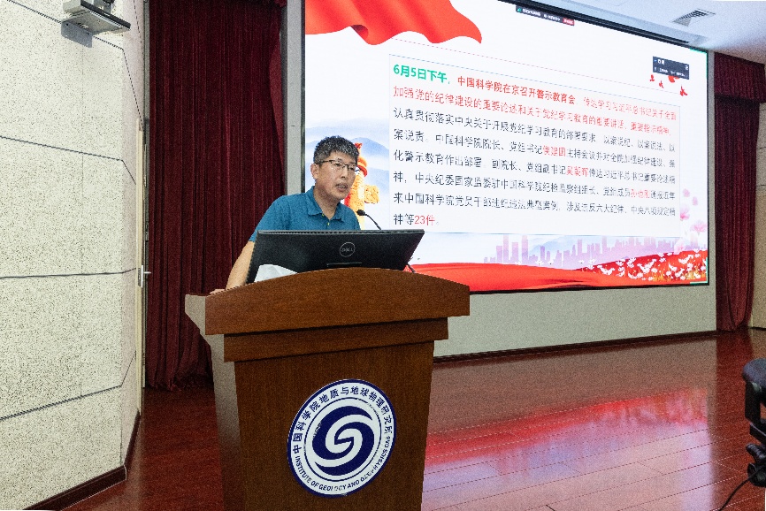 按照院党组和驻院纪检监察组的工作部署和要求,研究所同时开展了警示教育活动。杨俊成在警示教育会上传达了院警示教育会上党组书记、院长侯建国和孙也刚组长的讲话精神,并作了警示教育报告,通报了我院党员干部违纪违法典型案例,尤其是结合身边人、身边事的案例开展了警示教育。