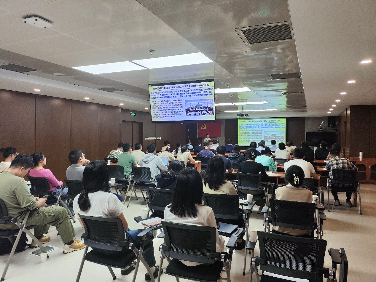 2024年9月29日下午,深地资源装备技术工程实验室党支部在地1楼第1会议室召开全体党员大会,深入学习党的二十届三中全会精神,讨论接收预备党员,开展“两弹一星”精神学习授书活动。所党委委员、所长底青云,支部党员和积极分子共计50人参加了会议,原党委书记张小雷应邀出席。会议由党支部书记张文秀主持。