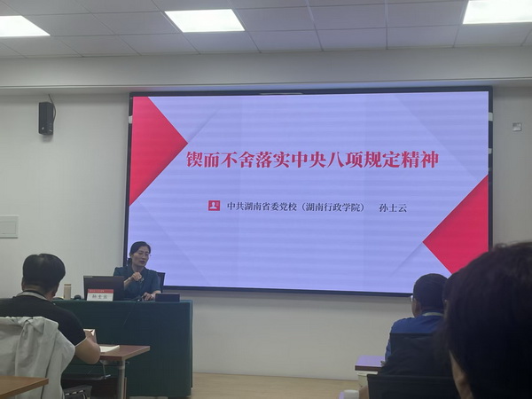 期间,中共湖南省委党校李美玲教授和孙士云副教授分别讲授《落实中央八项规定精神》和《毛泽东思想的早期孕育与萌芽》专题学习课程。从毛泽东思想的萌芽发展到习近平新时代中国特色社会主义思想的实践伟力,从毛泽东同志严以律己、警醒全党“两个务必”到习近平同志以“八项规定”开篇新时代党的作风建设管党治党新征程,专题学习培训进一步夯实了参训学员“两个确立”“两个维护”的政治自觉。