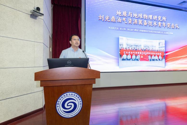 张文秀代表“刘光鼎油气智能导钻技术攻关青年突击队”作报告
