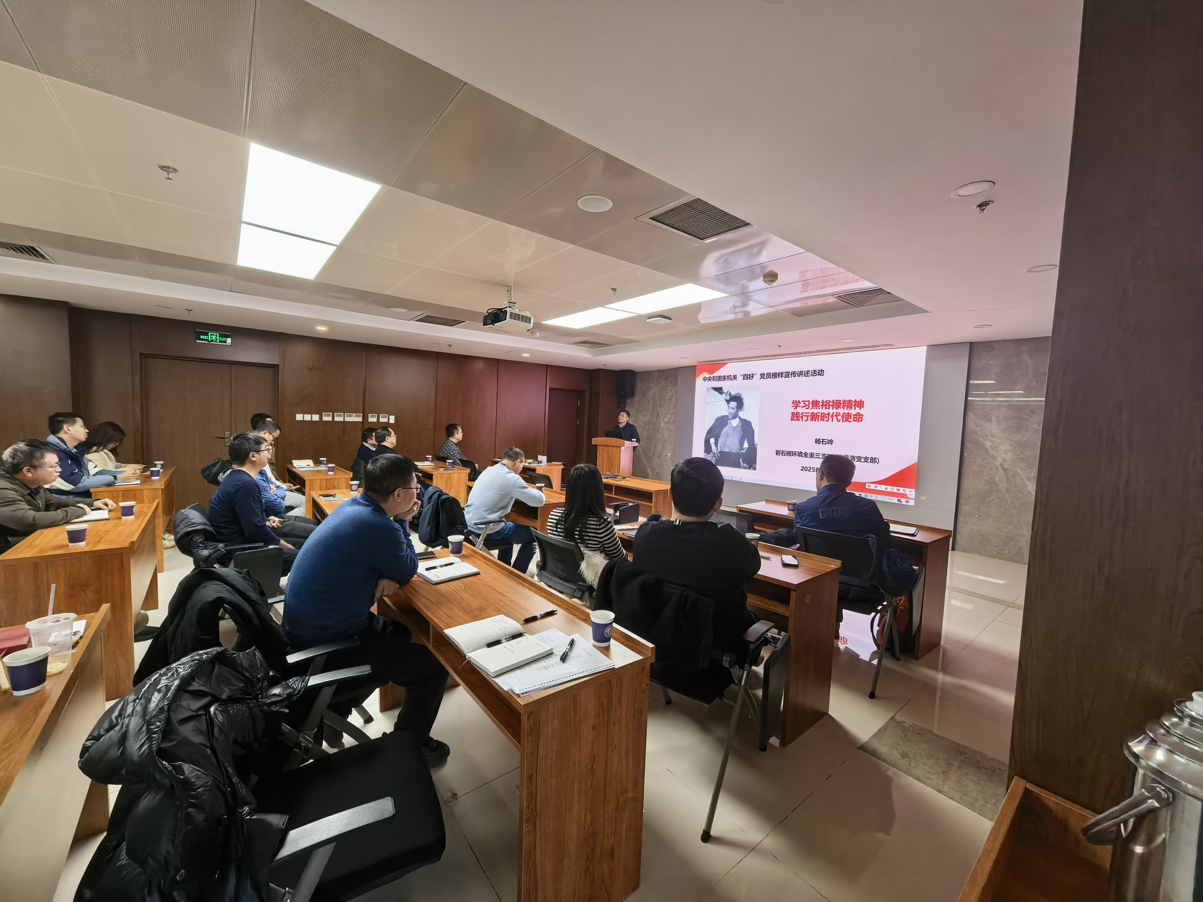 此外,活动还开展中央和国家机关身边 “四好” 党员榜样宣传讲述。杨石岭副所长以焦裕禄同志“亲民爱民、艰苦奋斗、科学求实、迎难而上、无私奉献”的崇高精神为指引,强调其与科研工作者爱国奉献、求真务实、攻坚克难的精神内核高度契合,号召全体党员以榜样为镜,勇啃科研“硬骨头”,将个人学术追求融入党和国家科技使命,为高水平科技自立自强贡献力量。