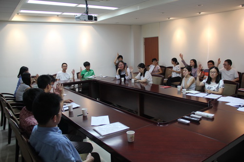第一议题在组织委员郭希同志的主持之下按照流程,依次进行了发展对象宣读《入党志愿书》,入党介绍人评议,支委会报告政治审查情况,与会党员讨论评议,表决,决议及发展对象表态发言几个环节。段耀晖同志的入党志愿十分恳切,两位介绍人愿意推荐其为预备党员。其他党员同志进行了积极的讨论,承认其优点的同时也指出了缺点,都表示愿意推荐段耀晖同志为预备党员。最后与会的全体正式党员举手表决一致同意接收段耀晖同志为中共预备党员。
