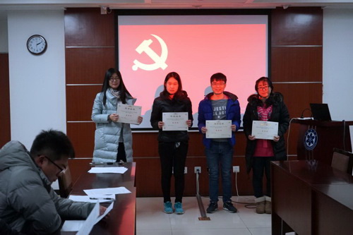 第二部分,为在“两学一做助力率先,不忘初心继续前进”征文活动中表现优秀的几位同志颁发奖状。这次征文是支部响应研究所号召,要求支部所有的党员及入党积极分子参加的活动。从收到的文章,可以看出支部党员在两学一做的过程取得了巨大进步。特别是部分党员能够写出真情,提出深刻认识与见解。本次获得奖状的同志有陈安平、范晶晶、王银之、张明辉、张强。