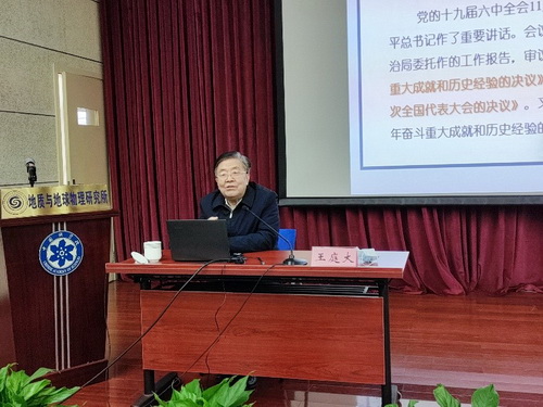 为使全体党员更深入理解十九届六中全会精神的丰富内涵和深厚意义,1月18日,中国科学院大学马克思主义学院院长王庭大应邀来所作题为“加强党的全面领导和全面从严治党”学习辅导报告。党委书记张小雷主持,研究所党政领导班子成员、纪委委员及党员共计130多人参加学习。