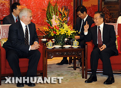 资料图片:2008年9月30日,国务院总理温家宝在北京中南海紫光阁会见到访的美国《科学》杂志主编布鲁斯·艾伯茨博士。新华社记者黄敬文摄