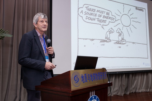 会议共安排口头报告43个,主要围绕以下四个主题开展了深入交流研讨:(1浅层地热系统的可持续利用;(2)水热型地热系统的可持续利用;(3)干热岩地热资源与增强地热系统技术;(4)地热储开采技术、模式与优化。庞忠和研究员在“丝绸之路上的喜马拉雅地热带”大会报告中介绍了我国在川西、新疆西部等地最近发现的不同于西藏的构造结型高温地热系统和我所的科研工作,指出丝绸之路链接中德,地热合作前景广阔。我所白登海研究员、何丽娟研究员、孔彦龙博士等分别作了报告,介绍了我所在喜马拉雅地热带深部热源地球物理探测、大地热流与干热岩资源评价、大型岩溶热储及其优化开发利用等方面的成果。