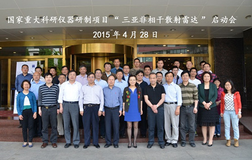 国家自然科学基金委员会批准立项的国家重大科研仪器研制项目“三亚非相干散射雷达”由800彩票、中国电子科技集团公司第十四研究所和南昌大学等联合承担,项目负责人为万卫星院士,实施周期为五年(2015年1月-2019年12月)。本项目基于国际雷达技术发展趋势和国家实际科研和应用需求,拟研制并在位于电离层低纬的三亚地区建设一台当前国际上最为先进的大功率相控阵非相干散射雷达,高精度地获得三亚周围两千公里内低纬电离层等离子体密度、成分、温度、漂移速度等参量的高度剖面,用于研究低纬大气层-电离层-磁层耦合、东亚电离层地区特性和我国南部电离层不均匀体与闪烁等重大科学问题,将使我国在该领域的科研水平处于国际先进行列。