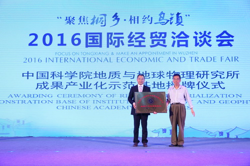 这是研究所多年来根据国家重大需求布局地球科学领域高端智能化装备技术研发,开展科技成果转移转化工作的重要进展;也是研究所在实践面向国民经济主战场,产出具有引领带动作用的重大战略性技术与产品和具有显著经济社会效益的重大示范转化工程方面的创新举措。签约仪式和研究所科技成果产业化示范基地授牌仪式在桐乡市2016年国际经贸洽谈会开幕式上举行,杨长春副所长、于连忠正高级工程师与郝天珧研究员等代表研究所出席。