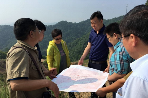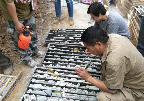 7月2日,在河南省有色金属地质矿产局相关专家的陪同下,底青云率队前往豫西地区申家窑矿区和寺家沟-宽平矿区进行实地踏勘,对矿区的地形、露头矿和钻探岩芯等作了详细的了解,并对成矿规律进行现场讨论,最终选定地球物理新技术探测示范剖面位置。