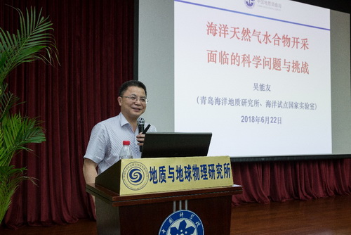 6月22日,应所长吴福元院士邀请,中国地质调查局青岛海洋地质研究所所长吴能友研究员来我所进行访问交流,并作题为“海洋天然气水合物开采面临的科学问题与挑战”的前沿学术报告。报告会由王彦飞研究员主持,包括所长吴福元院士等百名科研人员与研究生参会并进行了热烈的交流互动。