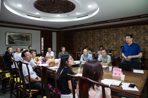 会议由钟华主持,他代表研究所对密云区领导的到来表示热烈的欢迎。会议主要围绕北京怀柔综合性国家科学中心协同创新交叉研究平台-深部资源探测技术装备研发平台建设项目开展交流。杨进辉从研究所的组织架构、国家重大项目承担、科技平台设备以及研究所的规划等方面进行了全面介绍。我所深部资源探测先导技术与装备研发中心副主任王中兴高级工程师详细介绍了研发平台及工程化平台情况。
