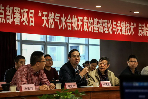 专家组对每个课题进行了详细的评议,王思敬院士建议项目应强化与产业目标相关的应用基础研究,找准关键科技问题,促进天然气水合物事业的发展。专家组组长叶建良交流了广海局在天然气水合物研究及试采方面的工作经验和认识,指出天然气水合物研究是地球科学领域一个新的增长点,值得长期探索,希望能与我所加强合作,取得丰硕成果。
