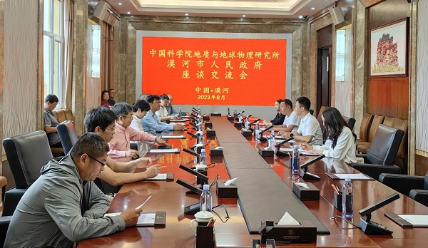 8月9日,所长底青云院士,党委书记、副所长张小雷以及潘永信院士等一行10人到访黑龙江省漠河市人民政府,双方召开了座谈交流会。与会的漠河市人民政府领导包括副市长贾传军、工信局局长杨帆、科协主席计鑫昊、自然资源局副局长申雪等同志。