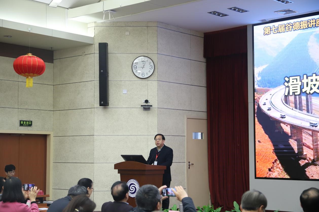 第七届谷德振讲座主讲人中国地质大学(武汉)唐辉明教授从事地质灾害研究40多年,是地质灾害防治领域的国内外著名学者。我国是全世界滑坡灾害最严重的国家,唐辉明教授以“滑坡演化与过程控制理论”为题,介绍了以多场演化、演化阶段与演化状态判识和过程调控为核心内容的滑坡地质灾害演化与调控理论方法,以及滑坡多场关联监测和大变形监测关键技术等技术应用成果。这些成果为宜居地球及可持续的地球科学发展战略、国家减灾防灾和重大工程建设作出了重要贡献。