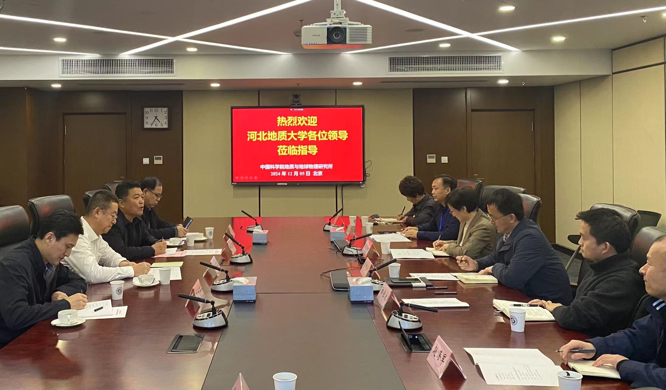 2024年12月5日,河北地质大学党委书记和志强、校长任家东等一行来我所交流访问。所长底青云院士出席座谈会。河北地质大学校友田恒次、赵海军副研究员及人事处、教育处、科技处部分管理人员参加座谈。会议由底青云主持。