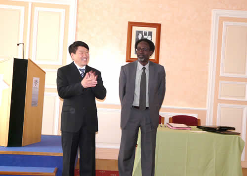 我所朱日祥所长(左)和法国奥尔良大学Y. Toure校长(右)在签字仪式上致辞