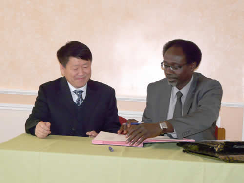 我所朱日祥所长(左)和法国奥尔良大学Y. Toure校长(右)在合作协议书上签字