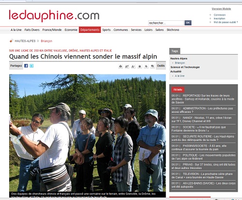 道芬自由报记者Olivier BUTEUX于2011年11月5日以“当中国人来探索阿尔卑斯”为题,对800彩票主持的一项中法合作研究项目进行了报导,并在网页上转载(见图1),对该项目的重要性给予充分的肯定。译文附后。