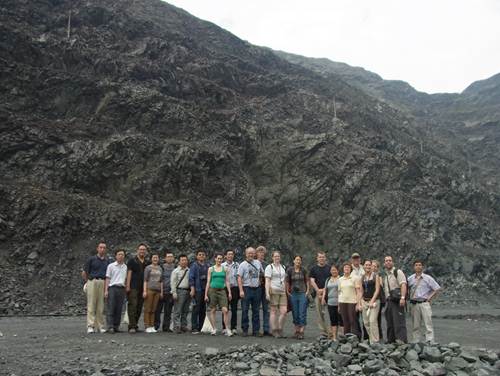 攀枝花钒钛磁铁矿采坑内会后考察人员合影