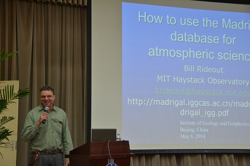 大会由刘立波研究员主持。美国MIT Haystack 观象台的Madrigal 系统高级架构师William Rideout详细介绍了Madrigal系统的结构、工作原理、数据内容、数据处理和各种下载方法,并列举多种应用实例。我所空间环境探测实验室的赵秀宽博士介绍了Madrigal系统在我所建立的数据镜像站的情况,研究所空间环境观测台链现有的观测数据和拟开展的数据共享方案。我所熊波博士结合自己利用Madrigal数据库资源开展空间物理科学研究的经历和取得的科研成果,详细介绍了如何快速获得有效的Madrigal系统数据,国内外如何应用Madrigal系统数据开展电离层研究。培训会上大家踊跃发言,对Madrigal系统、Madrigal系统镜像站和我所空间环境观测台链数据产生了浓厚兴趣。