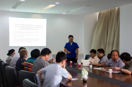 交流会由申萍研究员主持。矿产室范宏瑞张连昌研究员,李光明徐兴旺副研究员,中国地质科学院地质力学研究所陈宣华、陈正乐、韩淑琴研究员、长安大学潘鸿迪教授以及我所研究生参加了会议。北京乐都投资有限公司张林浩工程师担任俄文翻译。会后,各位地质工作者与Eleonora Seitmuratora教授进行了热烈的讨论和交流。
