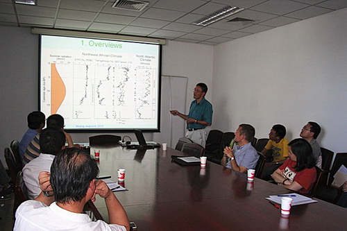 英国苏塞克斯大学(University of Sussex)Michael Reginald Frogley博士、王毅博士于7月21日访问我所新生代地质与环境研究室,并分别作了题为“Mid to late Holocene environmental change in the Andean Highlands of Peru: Evidence from lake sediments”和“Understanding abrupt climate changes in mid-Holocene North Africa: A dynamic transition from sustainability to vulnerability”的学术报告。