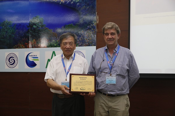 会议主席刘嘉麒院士向墨西哥火山学家Claus Siebe教授颁发Jim Luhr奖