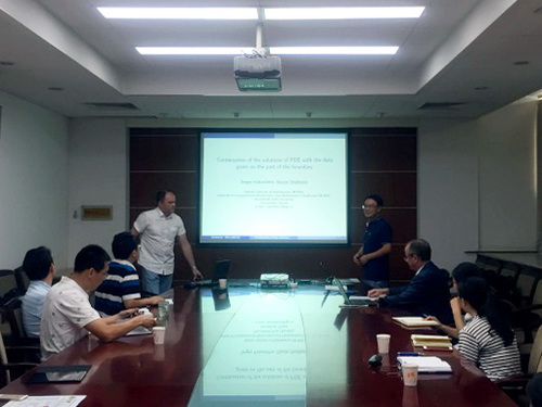 Kabanikhin院士首先介绍了俄方研究所的研究方向、核心成果及科研队伍。杨进辉对我所的研究战略、科研地位、组织架构及科研平台进行了介绍。双方拟通过联合研究及联合科研项目、人才交换及互访、联合研究生的培养等合作形式进一步加强两所战略合作,为两所科研领域的开拓创新积极提供助力。