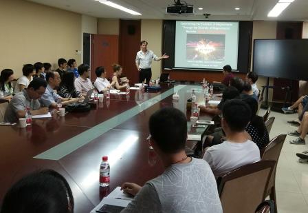 26日,Bazylinski教授与实验室研究人员以及研究生们就具体研究课题进行了交流和讨论,针对研究生们的问题给出了有针对性的指导和建议。