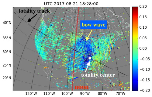 2017年美洲扇区发生的超大日食期间,电离层电子密度弓激波的图像