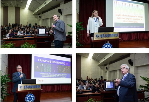 加拿大地质调查中心Simon Jackson研究员、瑞士联邦理工大学Bodo Hattendorf研究员、比利时根特大学Frank Vanhaecke教授分别作了题为“Revealing the histories of geological minerals using LA-ICP-MS imaging techniques”、“Implications of sequential isotope detection on the pixel size in LA-ICPMS images”和“LA-ICP-MS bio-imaging 2.0”的大会特邀报告。日本东京大学Takafumi Hirata教授、爱尔兰都柏林三一学院David Chew副教授、西班牙萨拉戈萨大学Martín Resano教授(JAAS杂志主编)、德国马普所Klaus Perter Jochum研究员、澳大利亚科廷大学Peter Kinny教授、德国汉诺威大学Ingo Horn研究员和张超博士后、南非开普敦大学Petrus le Roux研究员等国内外学者在会上作了精彩报告。